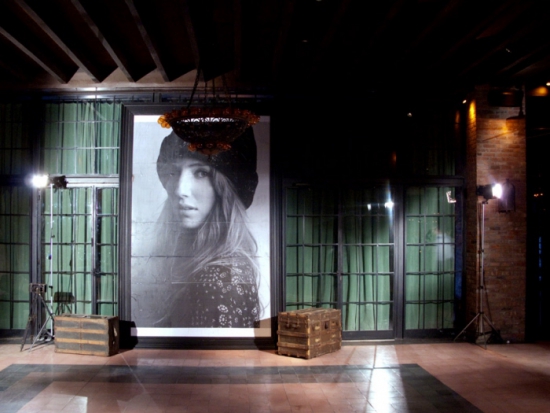 For the clothing line’s 2010 Fall/Winter collection presentation at NYC’s Bowery Hotel, our goal was to make everything extra large and opulent, as though it had all been found in a grand estate. By Kenyan built ten-by-six foot frames made from crown molding which are usually reserved for ornate ceiling detailing. We brought in stage lighting to highlight the models, old trunks, and vintage movie cameras. Additionally, we made giant chandeliers comprised of hundreds of antique crystals, brass, bulbs and other lighting fixture elements.