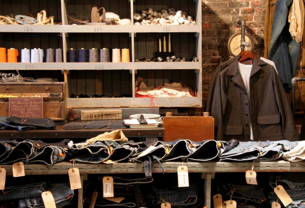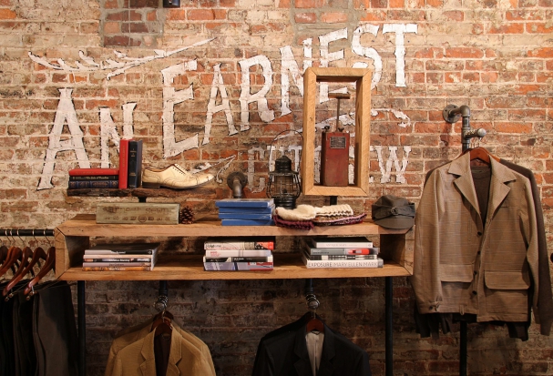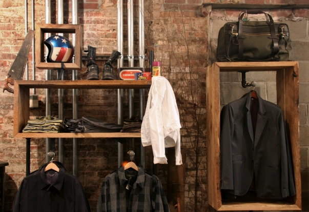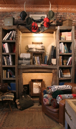 For four years now, we have conceptualized the theme and décor of Earnest Sewn’s location in New York’s Meatpacking district. The theme was heavily influenced by a 1930s Machine-Age aesthetic that has since become an in-house specialty. Our team took a gutted space with a concrete floor, and did the entire build-out in heavy reclaimed wood— from the dressing rooms and back bar, to the fireplace and clothing racks. In addition to sourcing all of the furniture and display units in the store, By Kenyan is also responsible for curating the store’s pop-up design space— transforming the same room each month with unique flairs to suit a revolving assortment of brands, including Repetto, Santa Maria Novella, and John Derian.