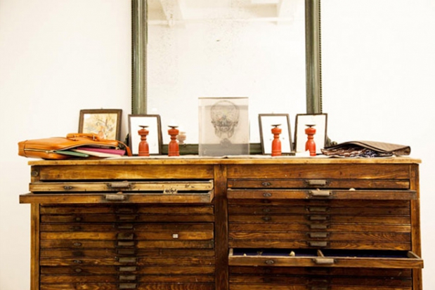 We also designed his townhouse showroom and office, adding accents such as a custom-built farm table, sourced antique furnishings, and an impressive wooden letterpress holder that we converted into a jewelry case lined with blue velvet.