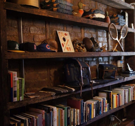 Leisure Life is a men’s luxury boutique located in Brooklyn. The space had originally been a general store, but over the years had many other lives. We decided to strip it back down to its bones, restoring the walls and exposing the original wooden floor. We then appointed the space with vintage athletic paraphernalia, worn leather upholstered furniture, and books about hunting and carpentry.