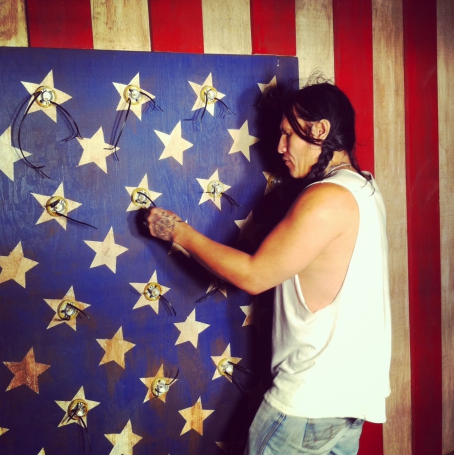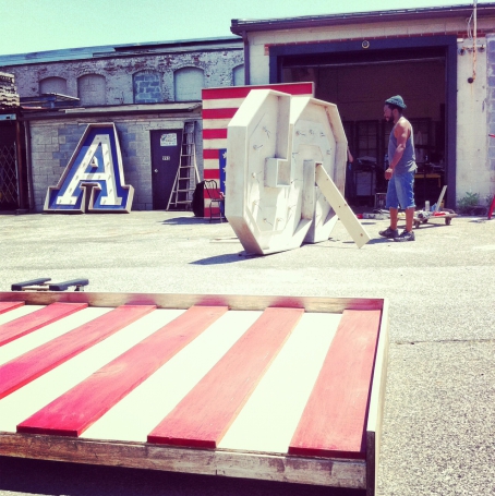 Our custom lettering and window fixtures have been featured in Ralph Lauren stores across the U.S. and Japan. Some projects have included custom signage, lettering, and fixtures for a number of different retail stores. The signage and letterings were fabricated from pieces of reclaimed barn wood and metal, which ranged in size from twenty-four inches to ten feet. Most recently, By Kenyan curated the 2012 children’s holiday window display for the brand’s upper Westside New York location. The display featured a series of wooden animal credenzas inspired by depression-era tramp art. Each piece was crafted from multiple layers of wood—the edges were chiseled by hand to create a playful, retro effect. Additionally, we participated in the launch of Ralph Lauren’s 2013 Olympic collection, which entailed the fabrication of giant letters in aged wood that read U-S-A, as well as an eight-by-twelve foot wooden American flag that was lit with Edison bulbs.